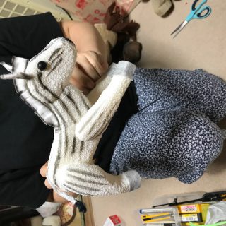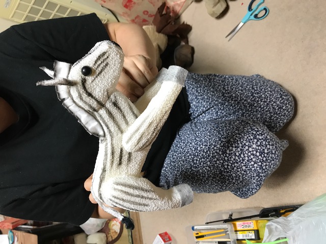 できたばかりの人形。 シリウス☆キッズの公演「たてじまくん」 の主人公、たてじまを持って生まれたシマウマ、 ブレイブの物語です。 iPhoneから送信