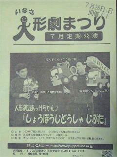 「しょうぼうじどうしゃ じぷた」の公演お知らせです。