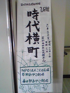 木曜日, 7月 8th, 2010草加と春日部さんの主催。 会館には巨大なおせんべの出迎え。さすが草加だ〜!と驚きつつ、 (対比のために置いた2literパックが…小さく見えますっ) 高学年〜の取り組みということで、 たくさん作業した成果↑が。 学童保育&劇場育ちのぼくとしては、こーゆー賑やかな感じは昔を思い出すようで、 なんだかとっても嬉しくなります。 見てるだけじゃなくどーしても混ざりたい気持ちが高まって(うずうずっ)、 ちょっぴり参加させてもらいました、 ンが、 悔しい結果に… ワリバシダーツ、また練習せねばです。 お芝居の方もとっても盛り上がり、その後のおいしい居酒屋さんでも盛り上がり 楽しいツアーになりました。 草加春日部の皆さん、ありがとうございました〜!
