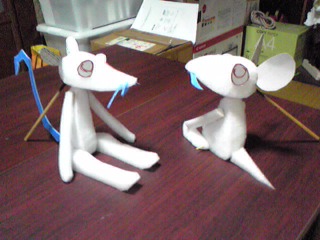 こちらは「うちおい」の主役ねずみたちの仮人形〜。 これで稽古して、構造や在庫の具合をみます。 おもしろい芝居になりますように…と、願いつつ。
