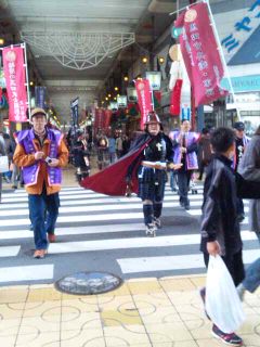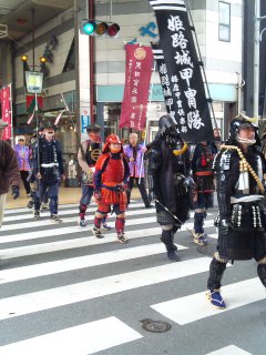 そして、なぜだか武将隊が登場。 誇らしげに、しかし呆然としてる間に、あっという間に通り過ぎていきました〜。 戦国ブーム?なのかな? いやはや、 びっくりの出来事でした。