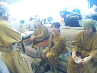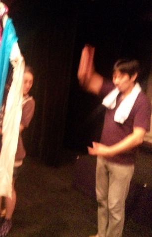 ひまわりホールに入ってからも、 ビシバシ稽古。 むすび座なるちゃんこと辰巳君の技術経験も、 しっかり吸収〜!! なるちゃんには、 今回特にいろいろお世話になりました。 ホントに、ありがとー!!