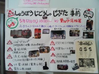 の、 手作り消防車たち〜! いろいろ工夫しながら作ってる姿が見えてくるようです☆ 豊田の皆さん、ありがとうございましたっ!!