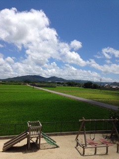 三河の、とある保育園さんにて。開演前、外を見ると、 爽やか〜〜〜 な景色が広がってました〜!
