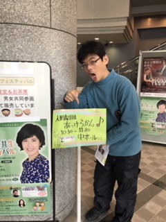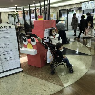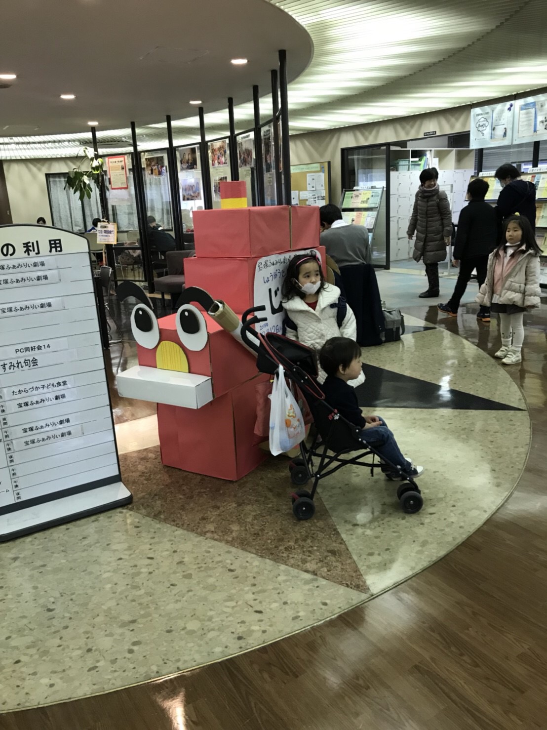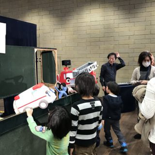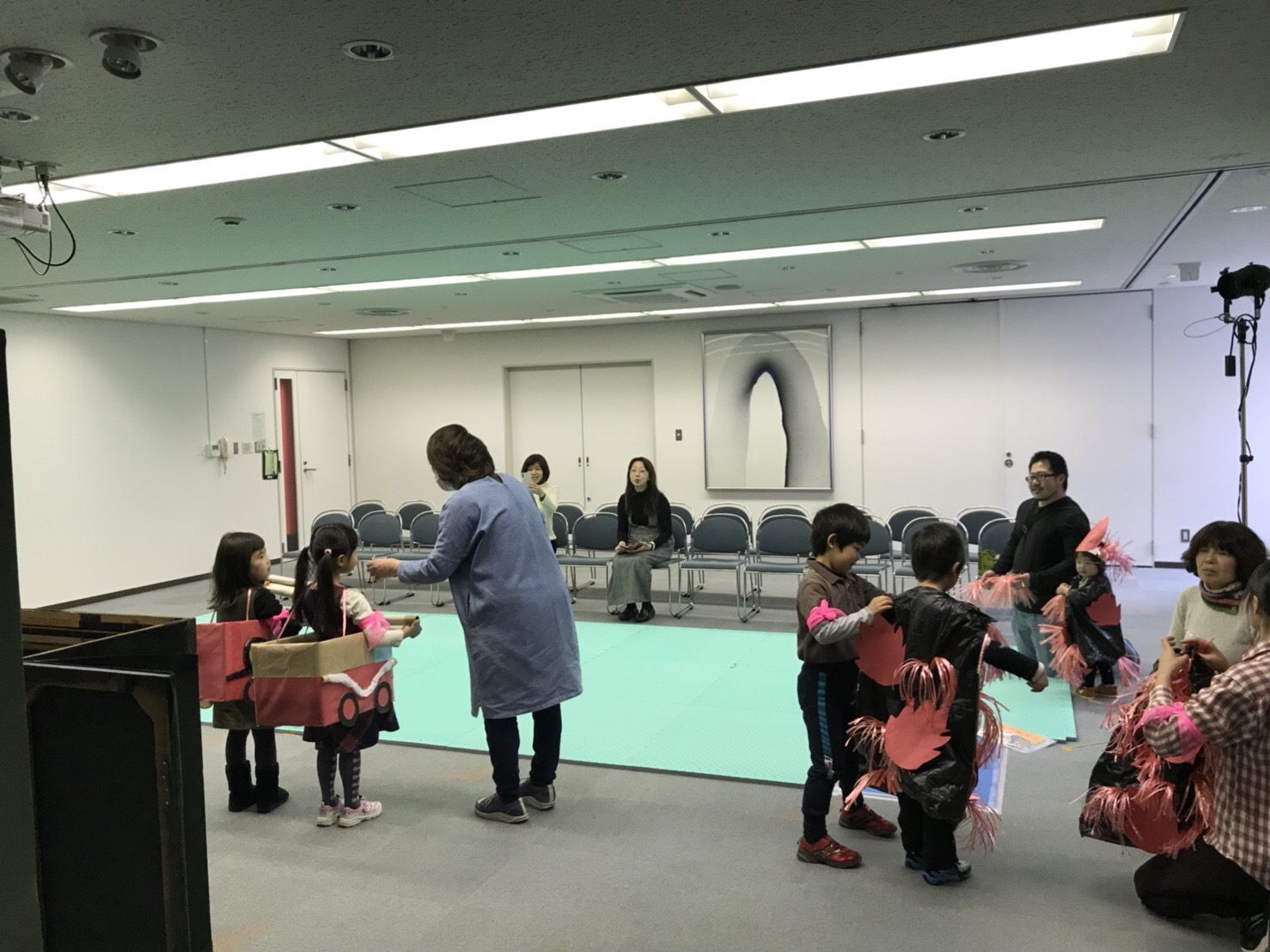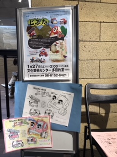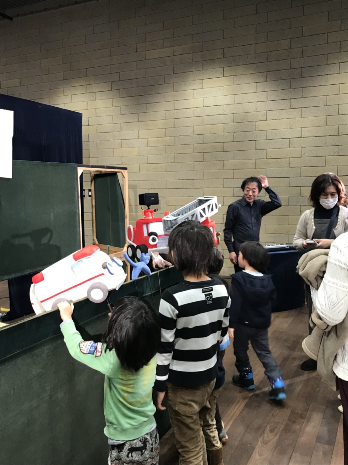 こちらは、じぷた駐車場です♪終演後、人形たちを持ってミニ人形劇の始まり?プレゼントは、じぷた!