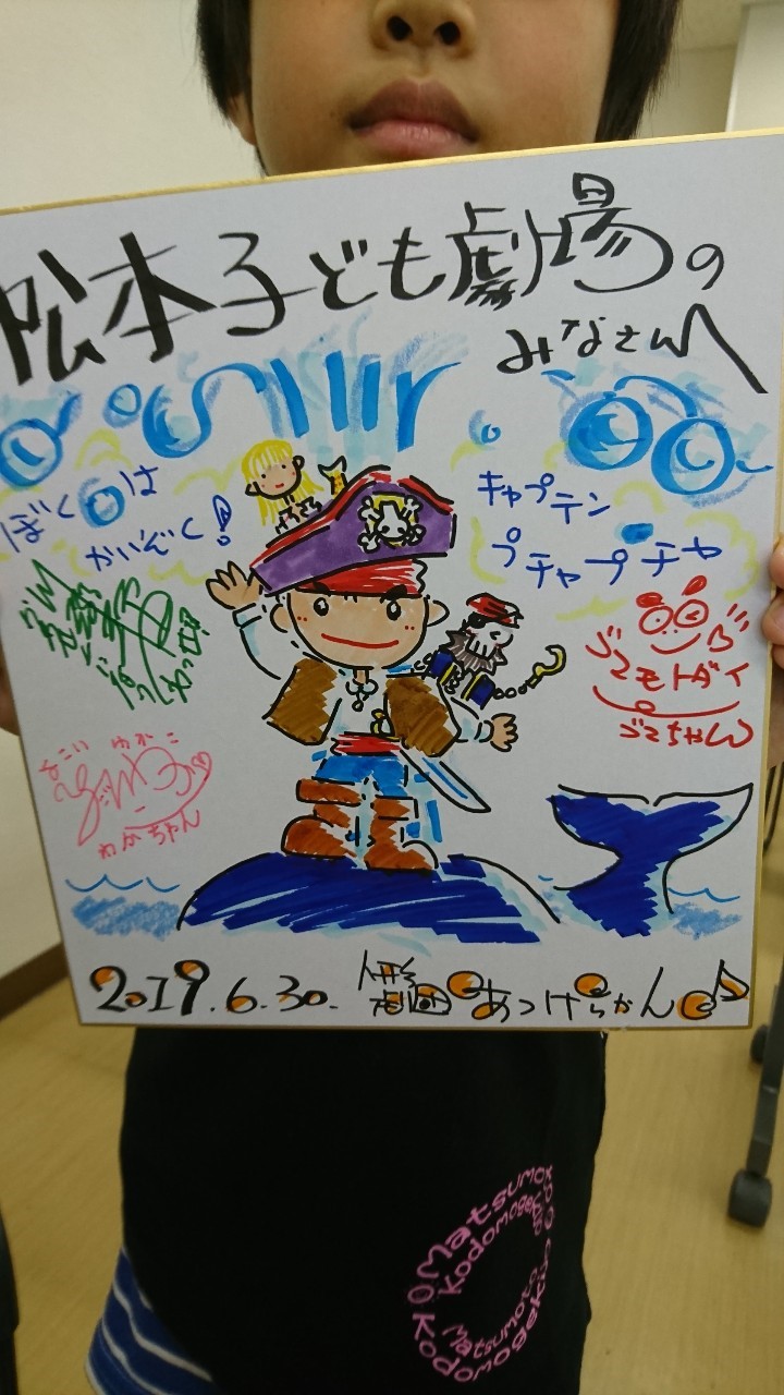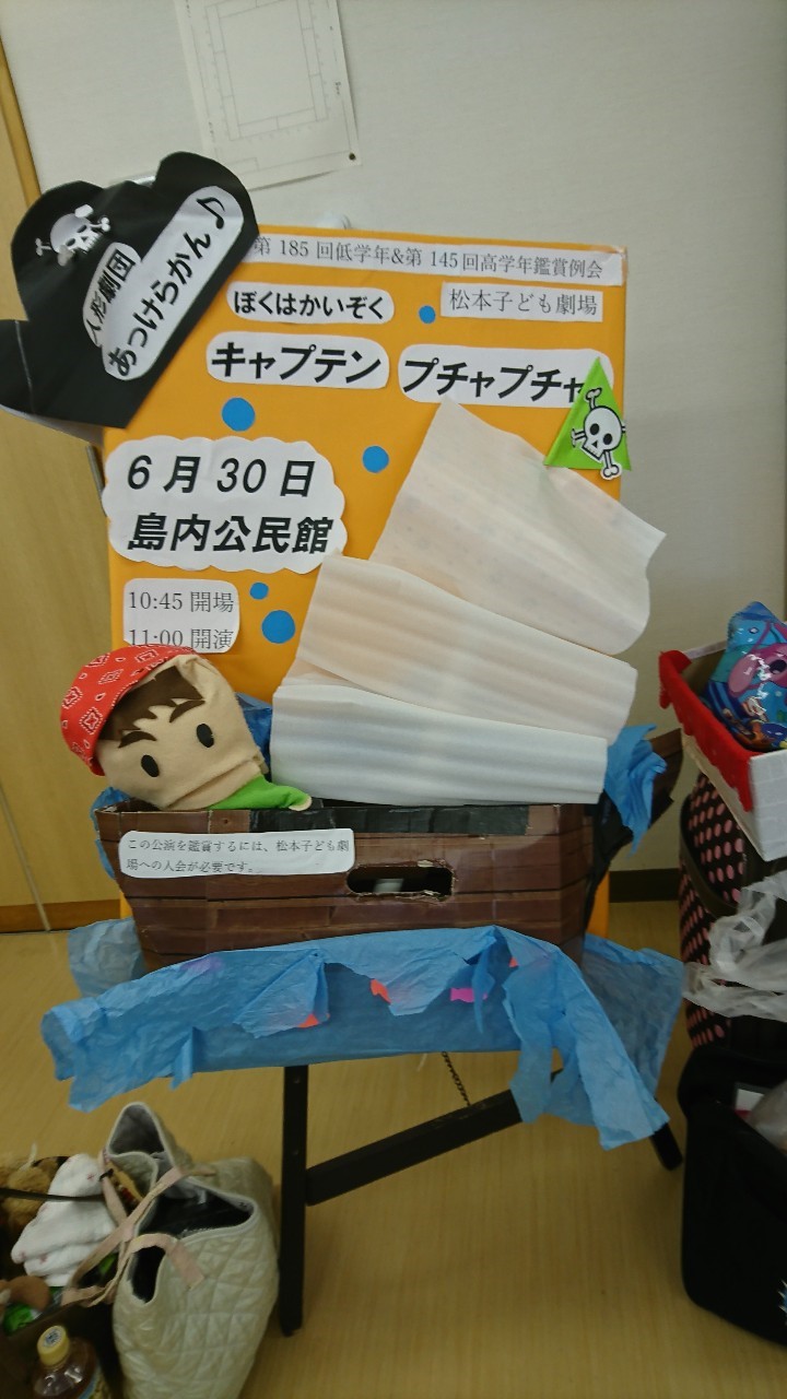 ぼくはかいぞく!キャプテン・プチャプチャの公演でした! みなさんの事前準備が大盛り上がり! すごい公演になりました!手作りお出迎えボード、プチャプチャの顔はめパネル、なんと人形のプチャプチャにピッタリ!はまりました!すごーい!