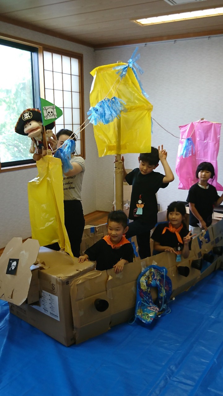 海賊艦隊だ!!いろんな様子がたくさん掲示してありました〜!力作!巨大船! 上演後にプチャプチャも乗せてもらいました!!
