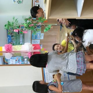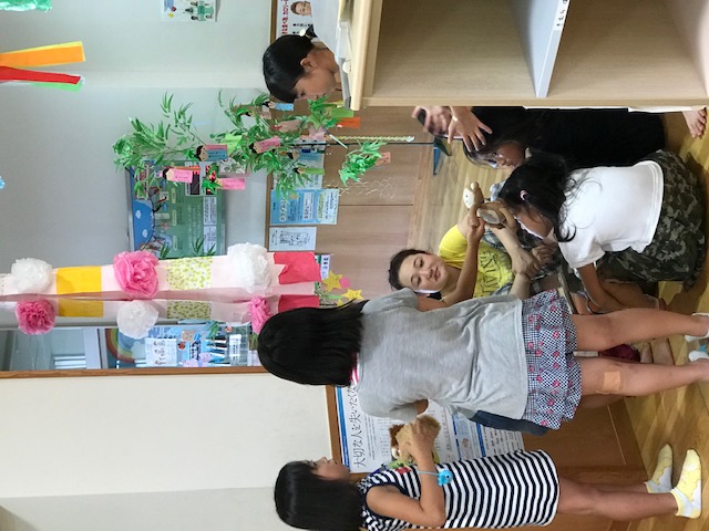 すっかり馴染みとなりました 岩沼西保育所さんとこちらは、児童館さんでの上演後。 子どもたちと、人形を通じて談笑しております。