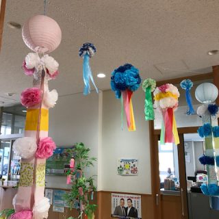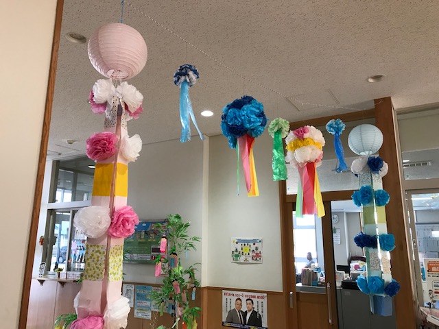 七夕さんが、旧暦なのですねぇー だるまちゃんたちの天井にも 七夕飾りが…キラキラ☆しておりました